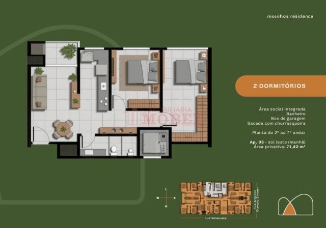 Apartamento de 02 dorm (sendo 01 suíte), área social integrada com churrasqueira, sacada e box para carro descoberto. O condomínio oferece Rooftop com piscina, salão de festas e academia. Conta ainda com Coworking, sala de jogos, quiosques e playground. Os apartamentos possuem gás central e espera para água quente.Detalhes do Imóvel